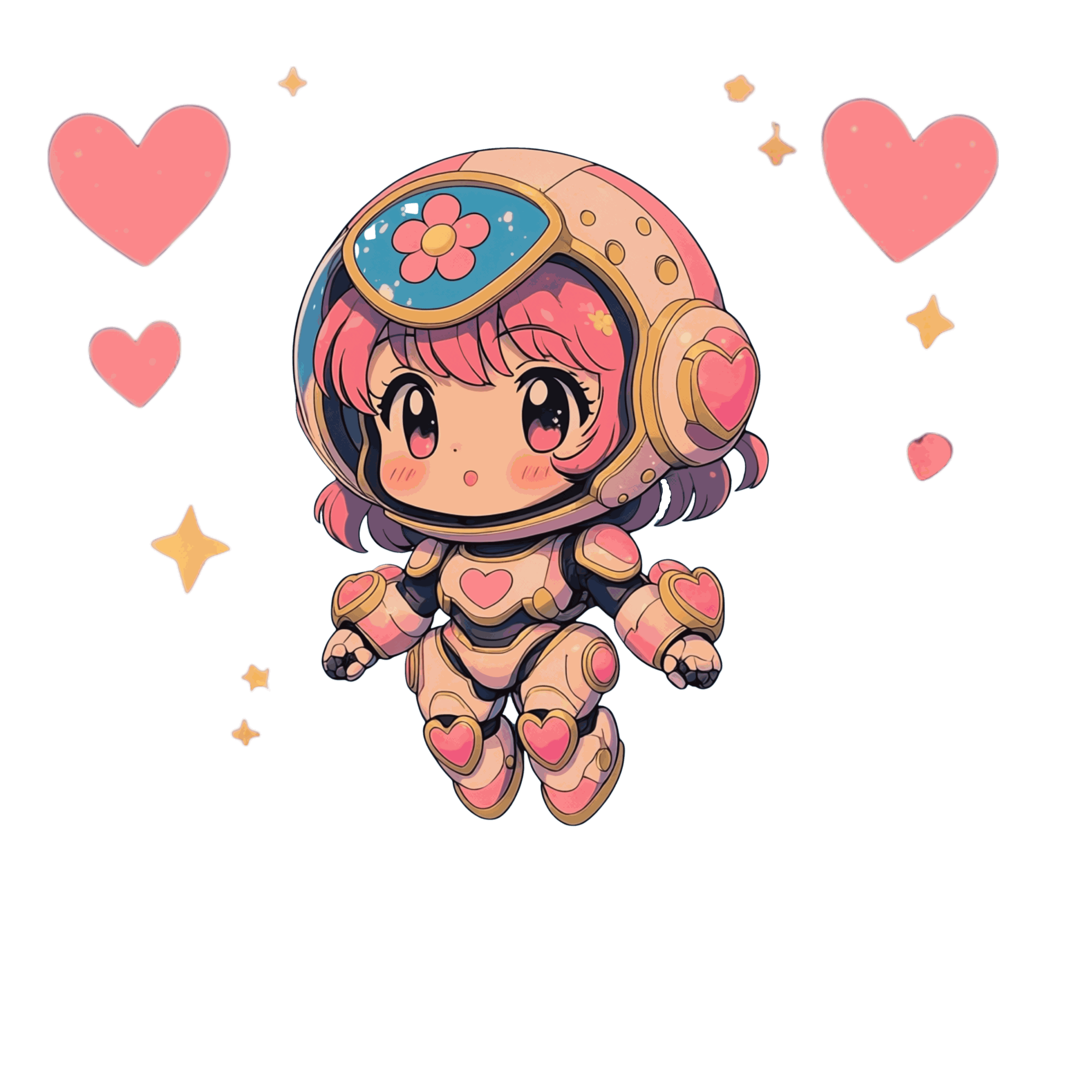- Chibi astronaut mamas floating through space with hearts trailing behind them